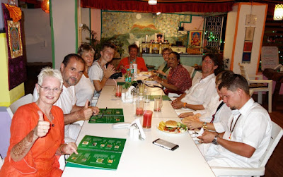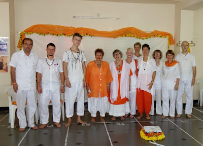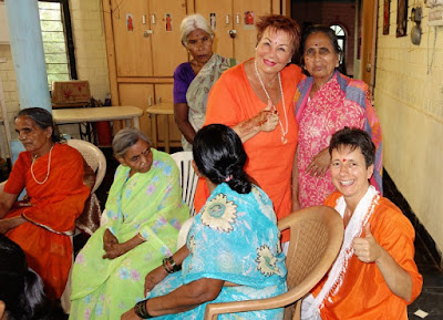 So treffen wir uns auch regelmäßig zum OM Singen bei Monika und Jolanda in Puttaparthie.